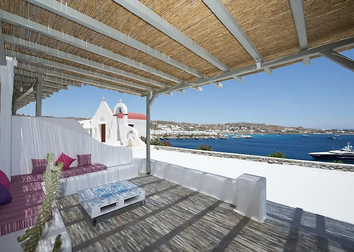 从此3星级的Mykonos Azure公寓式酒店走路10分钟就能抵达普沙罗市中心,宾客便可享大海景致.